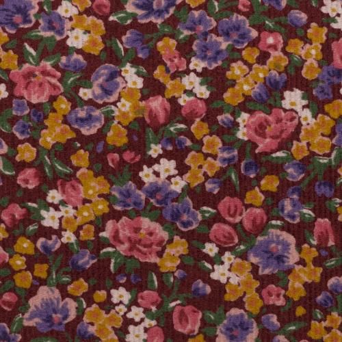 コットン×フラワー(バーガンディー、マスタード&グレープ)×細コーデュロイ